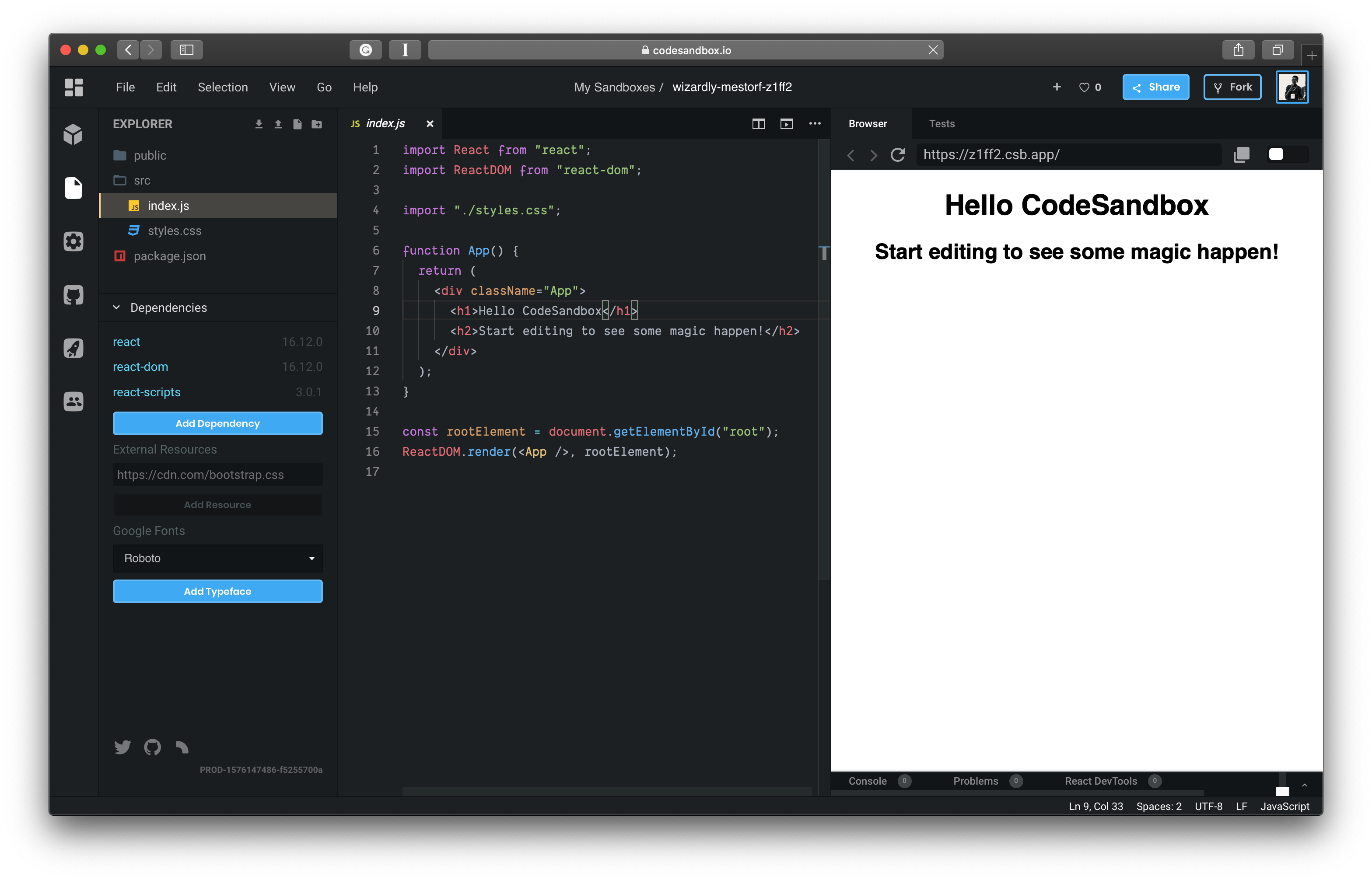Code Sandbox - React App With Codesandbox Tutorial React School - Getting started with phpsandbox.io — an online code sandbox for php.. Codesandbox is an online code editor and prototyping tool that makes creating and sharing web where teams build faster, together. Click try it! to start a new program or examples to start with some example code. Codesandbox is a tool in the cloud ide category of a tech stack. Get free code sandbox download now and use code sandbox download immediately to get codesandbox is an online code editor and prototyping tool that makes creating and sharing web. It's possible to share a sandbox in two ways: